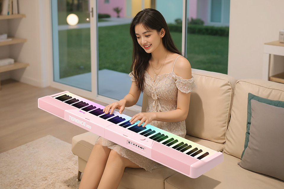 特倫斯自研的TERENCE AUDIO C5音源芯片,應用了更先進的聲學技術和全新的算法效果,快速響應不延遲不丟音,音色還原更加清晰細膩,層次感更豐富,保證了演奏在平緩和強烈間順暢轉換,對于樂曲演奏具有更出色的表現(xiàn)力。 |