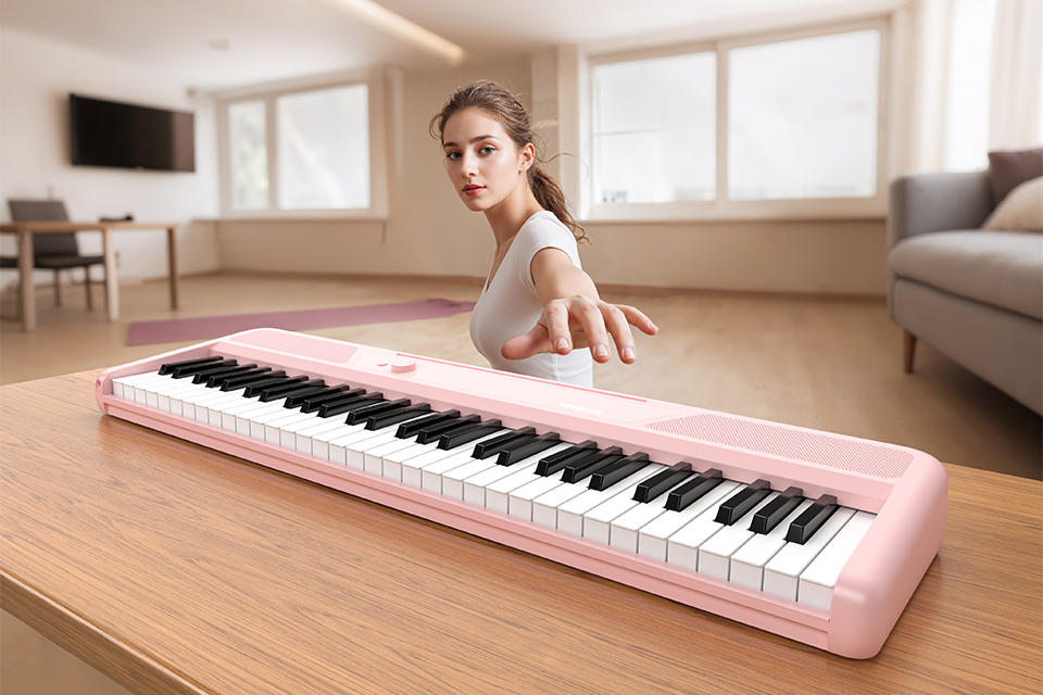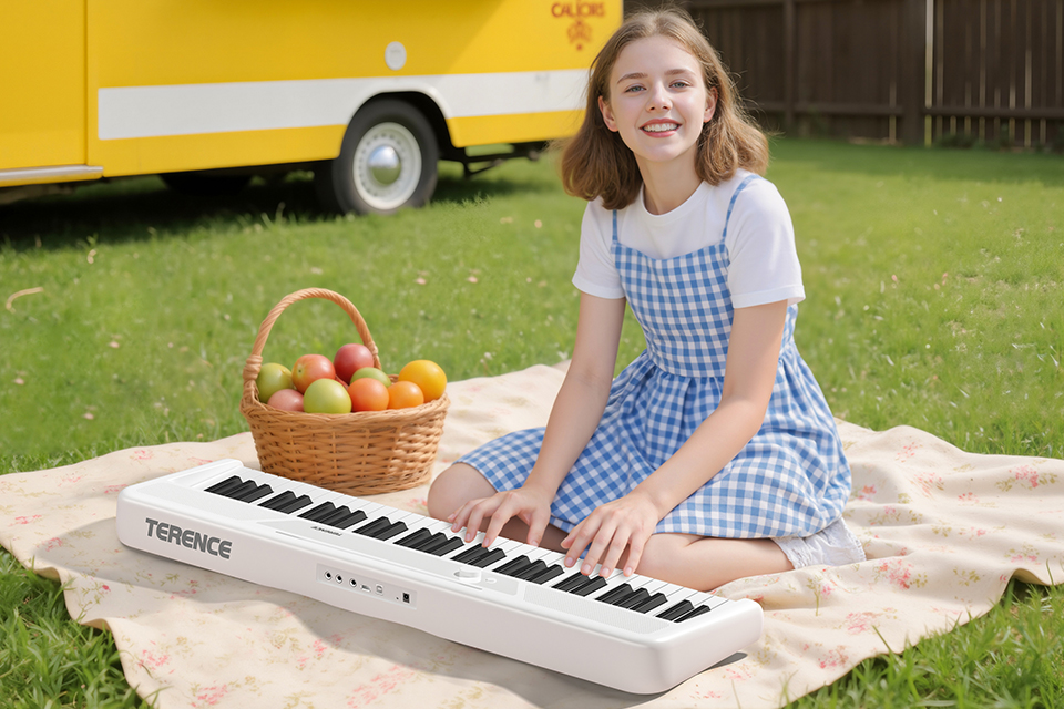 61個(gè)標(biāo)準(zhǔn)鋼琴鍵,通過不同的按鍵力度輕重,獲得音色及音質(zhì)的細(xì)膩?zhàn)兓?,擁有多樣化功能和力度感?yīng)觸鍵,表現(xiàn)出的真實(shí)音樂動(dòng)態(tài)演奏,樂曲更豐富細(xì)膩,更接近鋼琴的觸感和彈奏體驗(yàn)。 |
